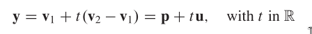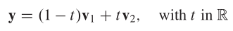 The affine hull of distinct points v1 and v2 is the line