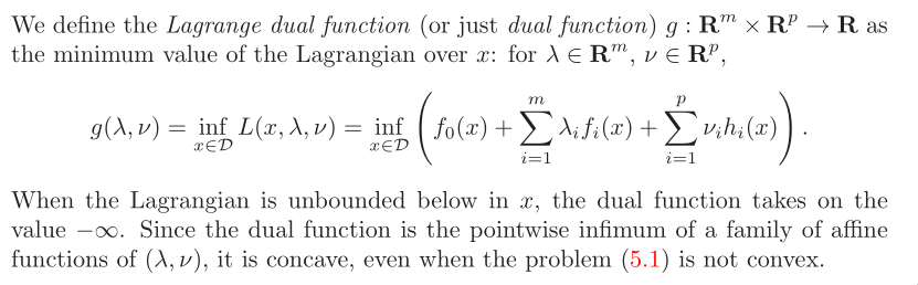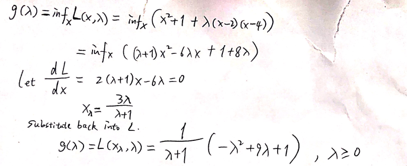 Intermediate step: g(λ) = inf L(λ,x)